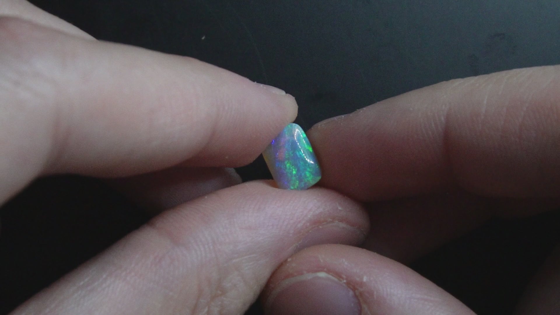 Crystal Opal cushion cut with a high dome, perfectly sized for a modest ring or pendant.