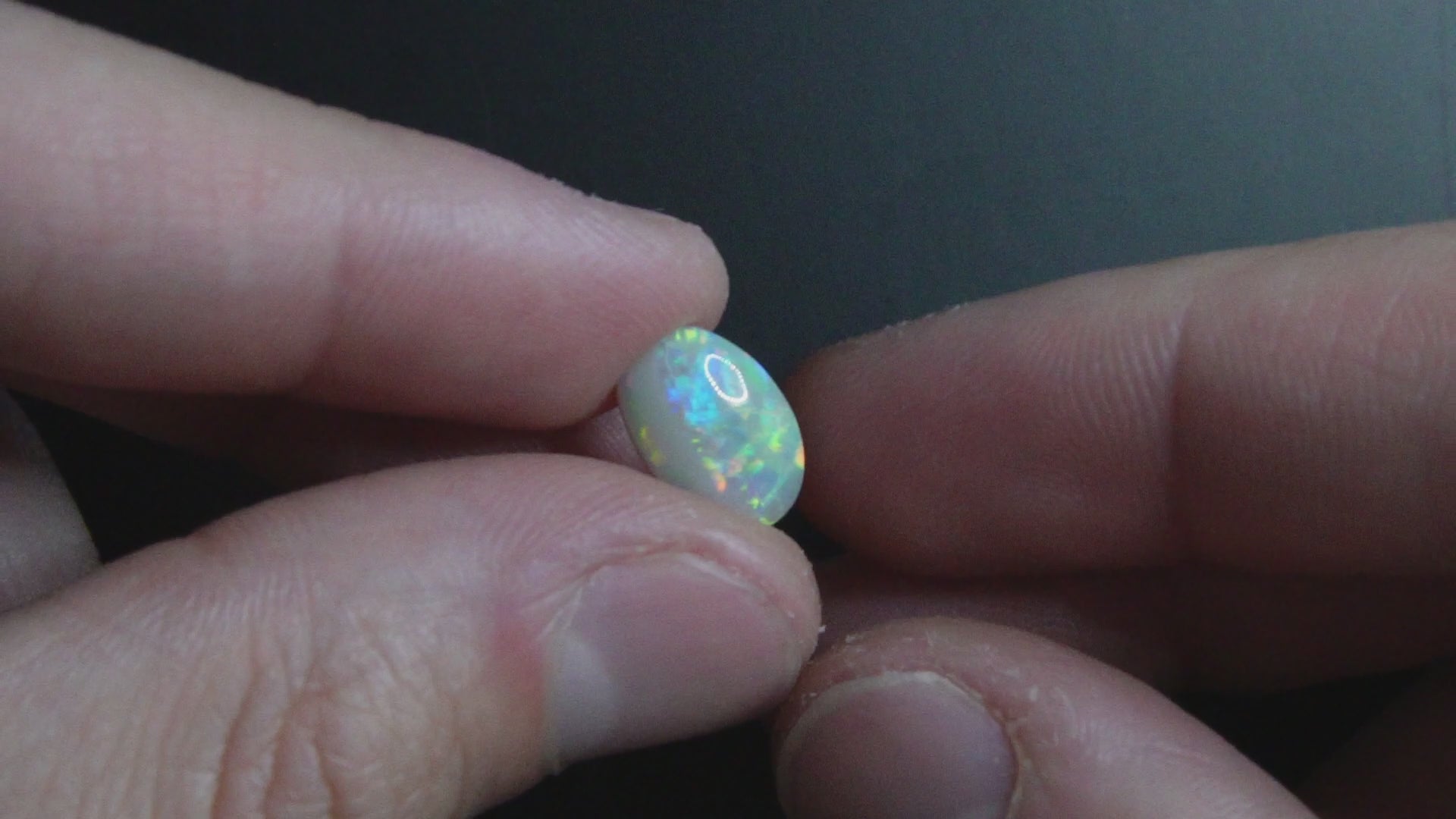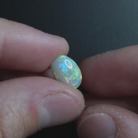 A brilliant dark opal oval with fantastic play of colour and range of colours.