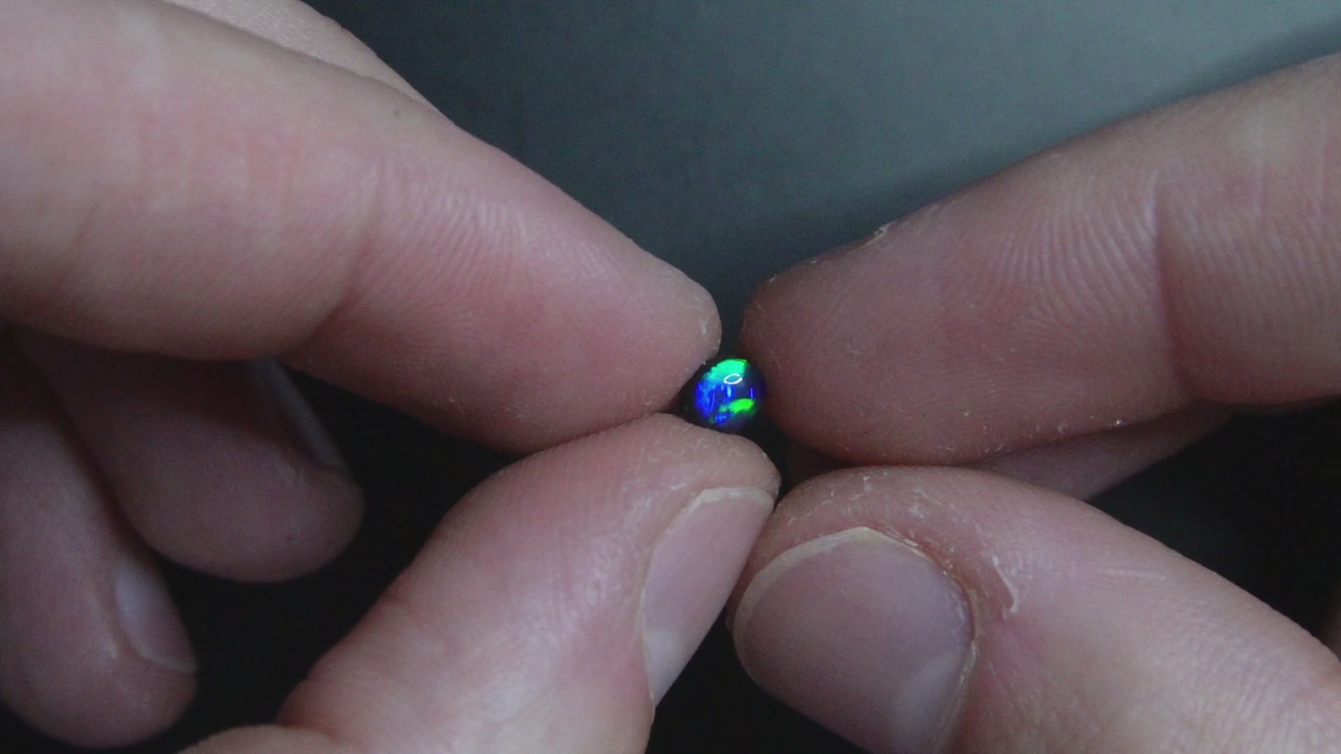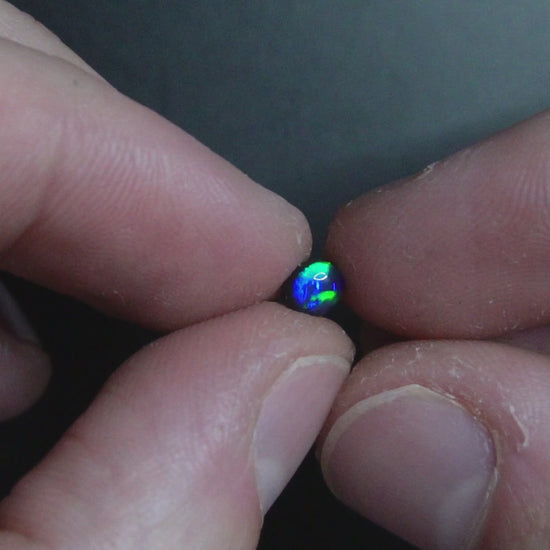 Stunning black opal with bright flashes of blue and green. Will make a stunning ring stone.