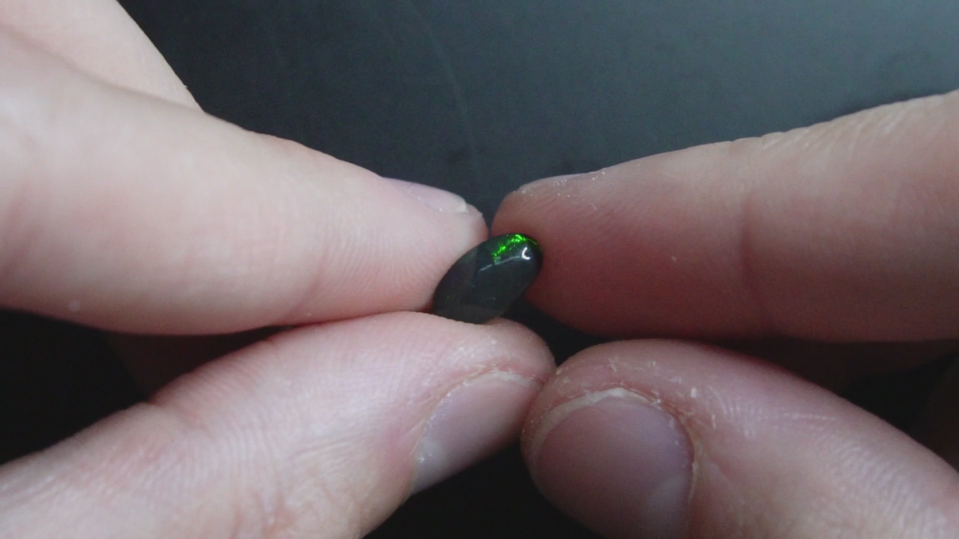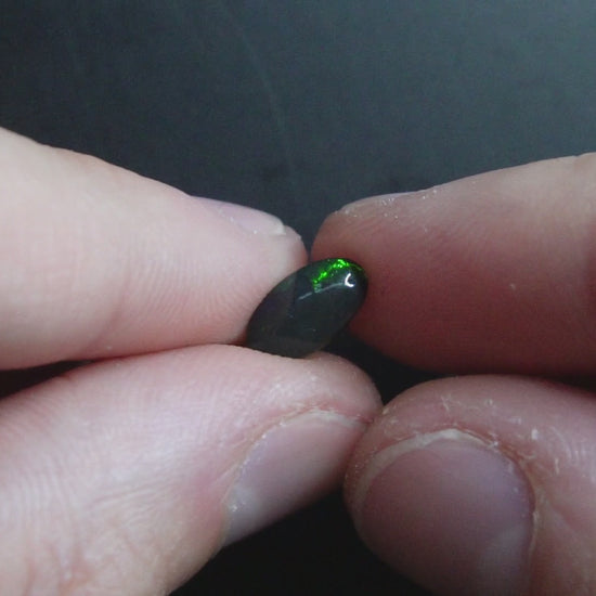 Black opal with very dark body tone and subtle flashes of colour.