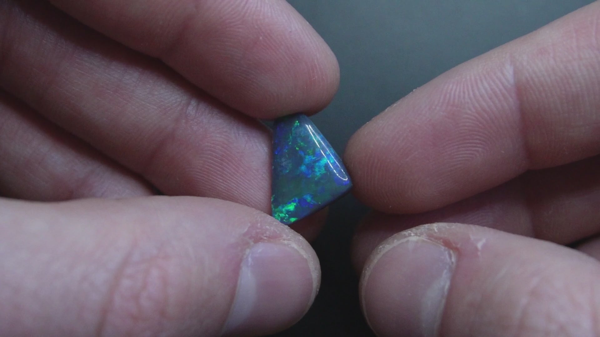 Top gem free form black opal, excellent brightness complimented by a high brightness.