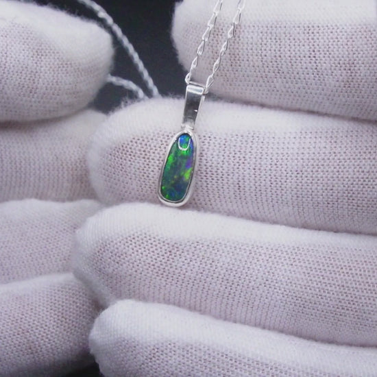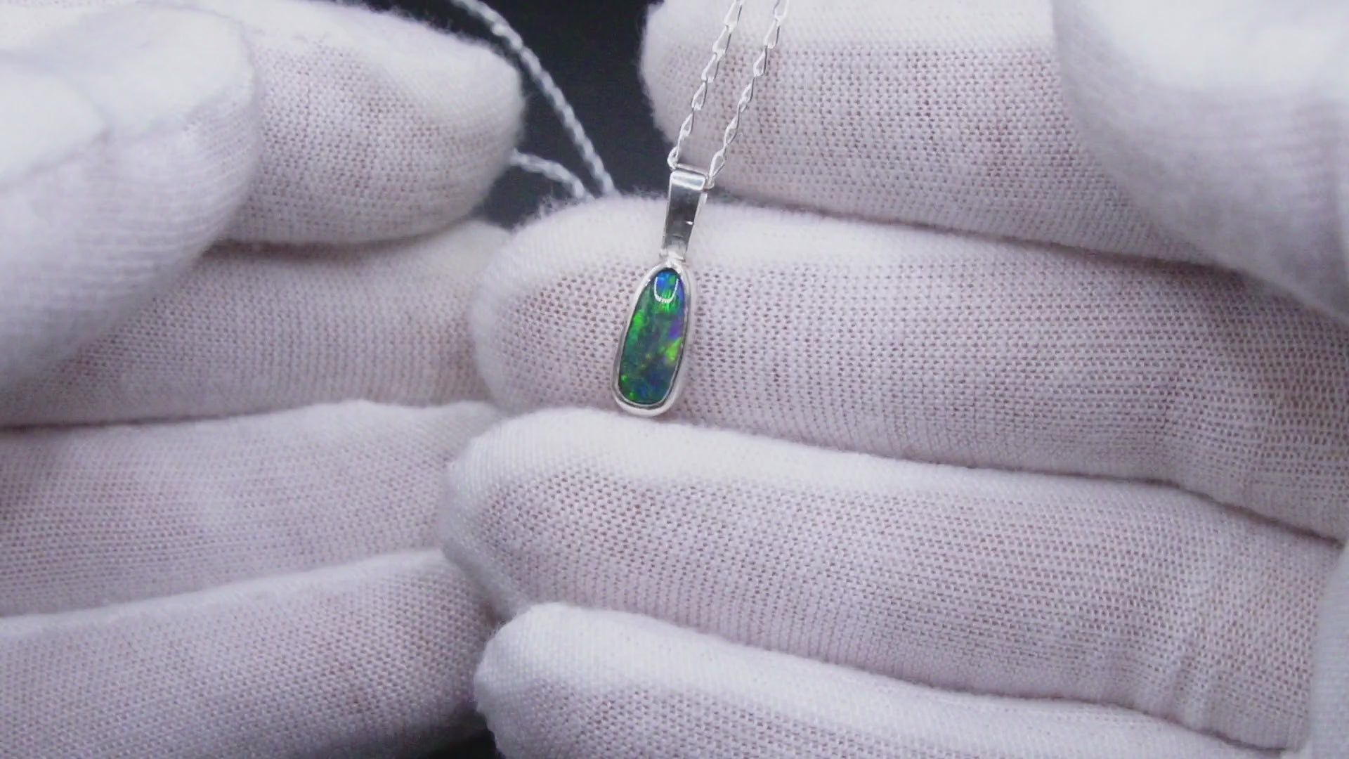 This Black opal is set in sterling silver with an 18inch diamond cut chain.