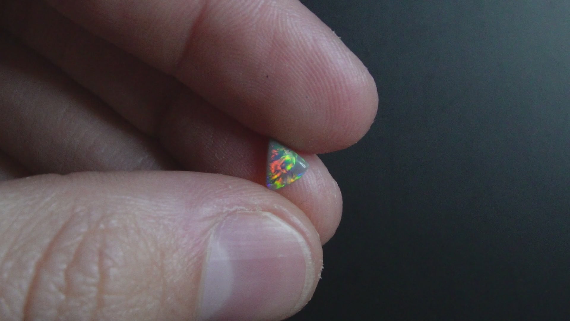 Free form dark opal with rare reds.