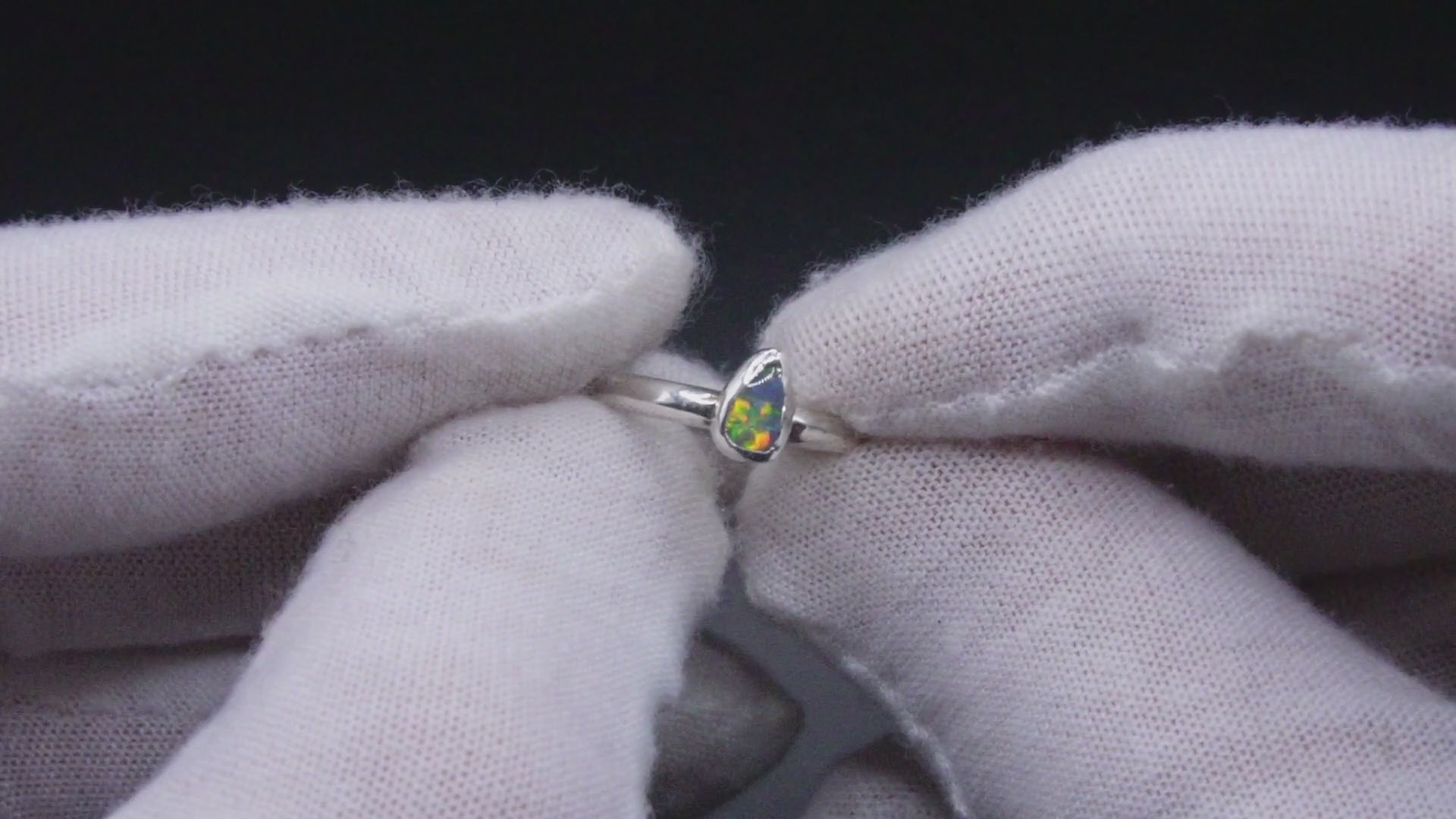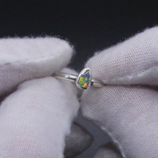 This stunning Dark Opal is set in a sterling silver ring. Size H.